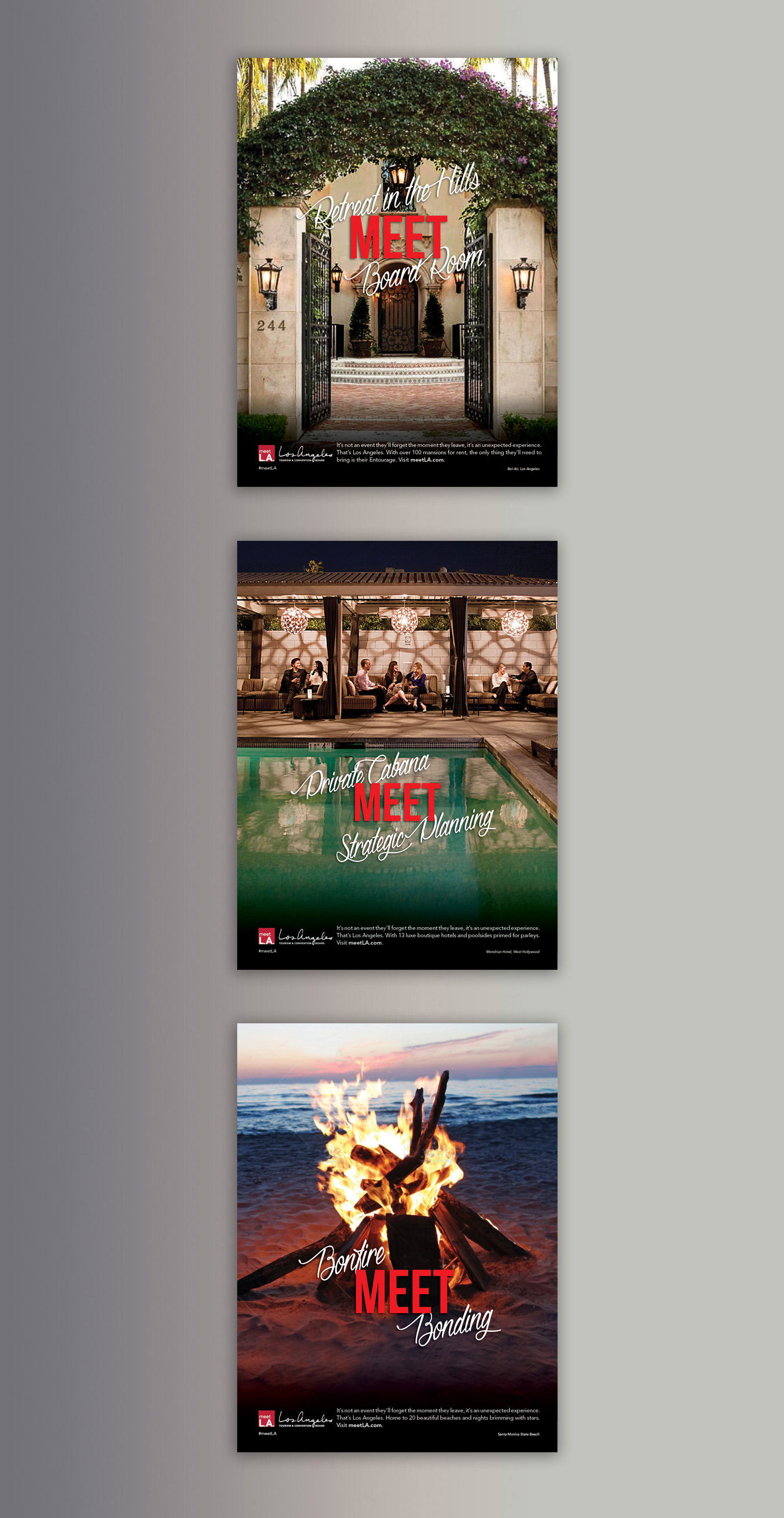 Attracting companies and associations to come to your city is big business. The obvious reasons to have meetings in LA are the great year-round climate and the movie industry, but everyone already knows that. How about promoting LA for its great art culture and fashion? In addition, there was one caveat, use a library of photography provided by the client. I created a great work-around by “placing” cut-outs of people in interesting LA scenes, which also turned out to be easy on the budget.