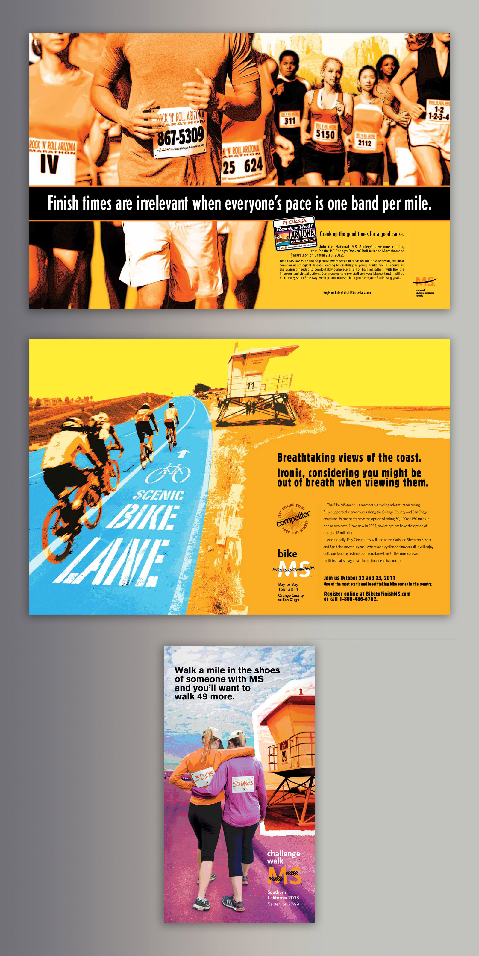Studies showed that the majority of support fighting critical diseases comes from people with a connection to the disease. So to increase participation and thus increase revenue, the best strategy was to position the fundraisers as premier events for athletes. Post event research showed the events outperformed projections by 23% and increased participation by those with no connection to multiple sclerosis by 19%.